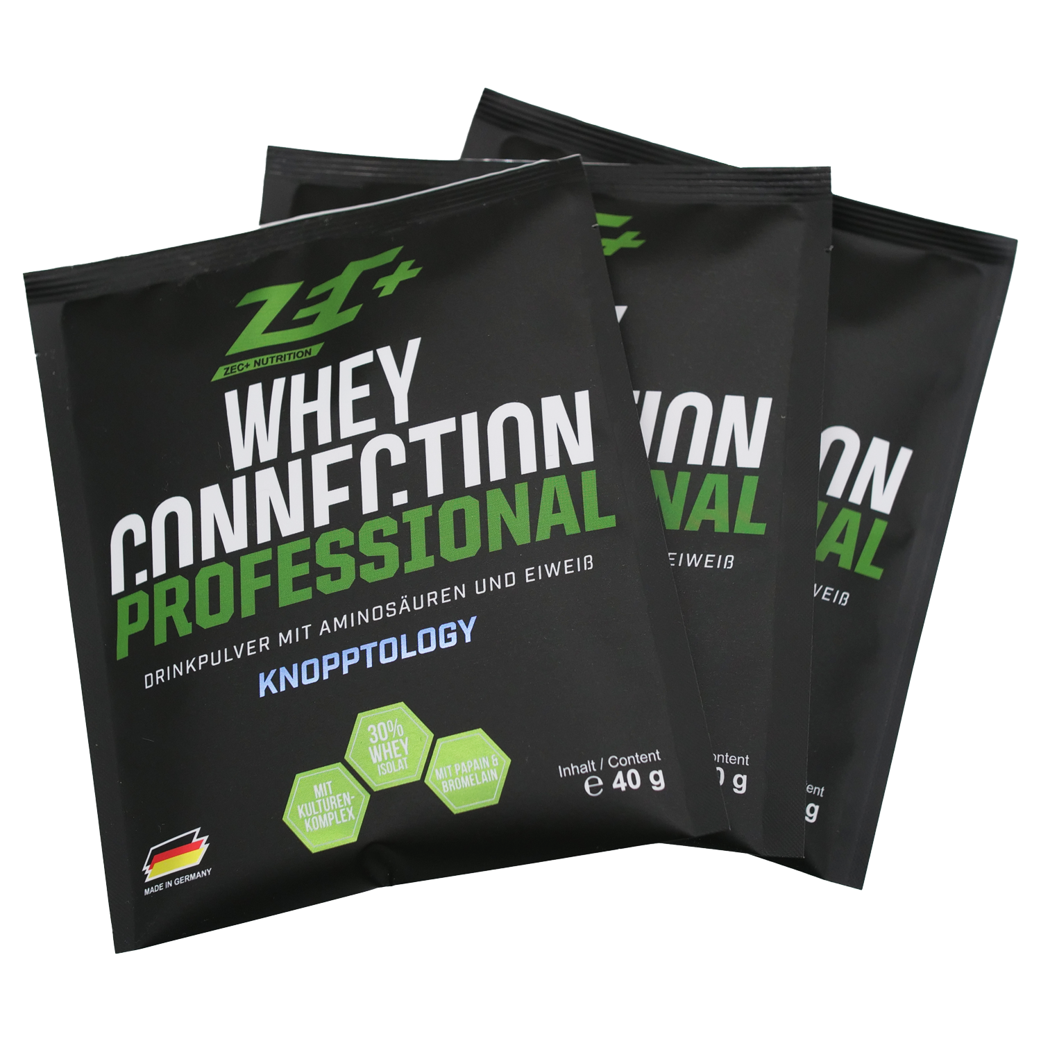 Los ingredientes científicamente probados de ZEC+ muestra WHEY CONNECTION PROF. 30g en varios sabores
